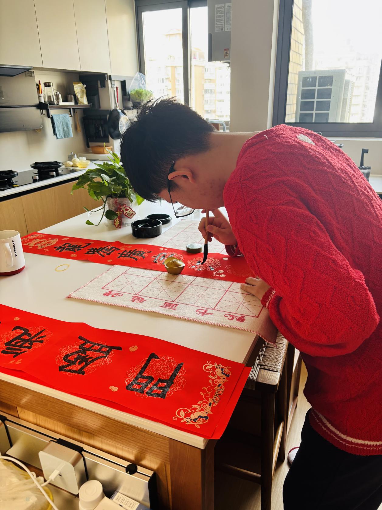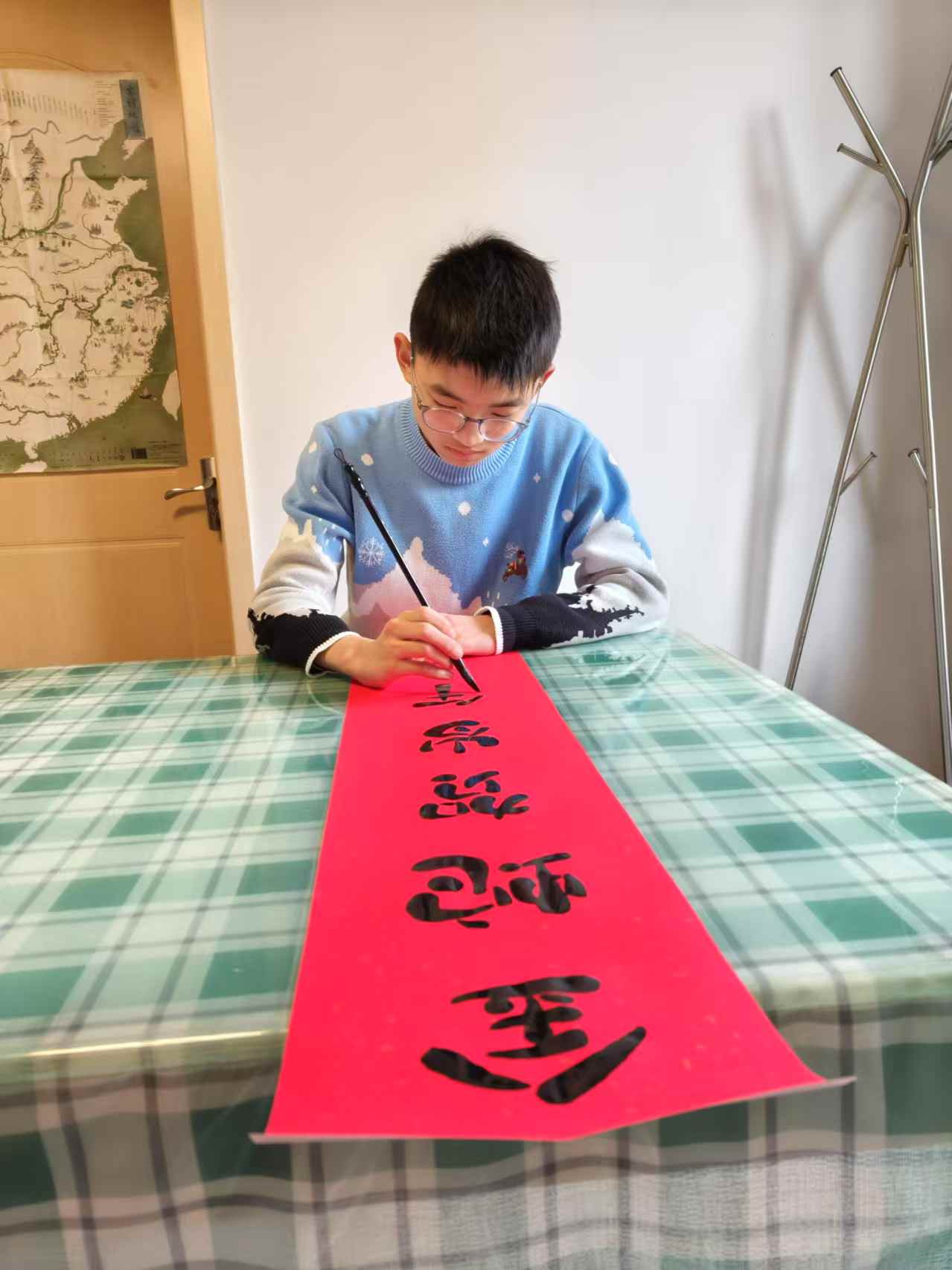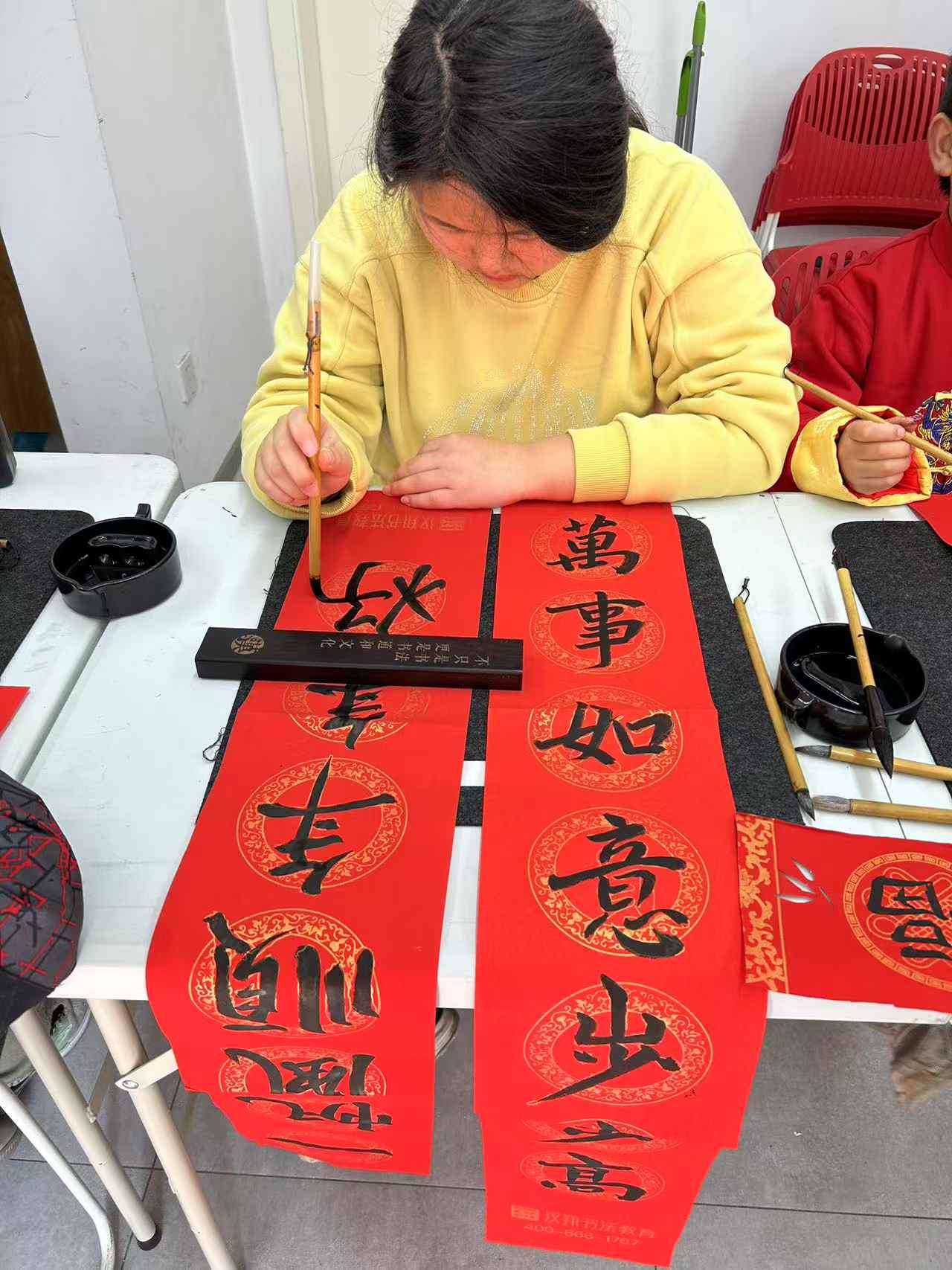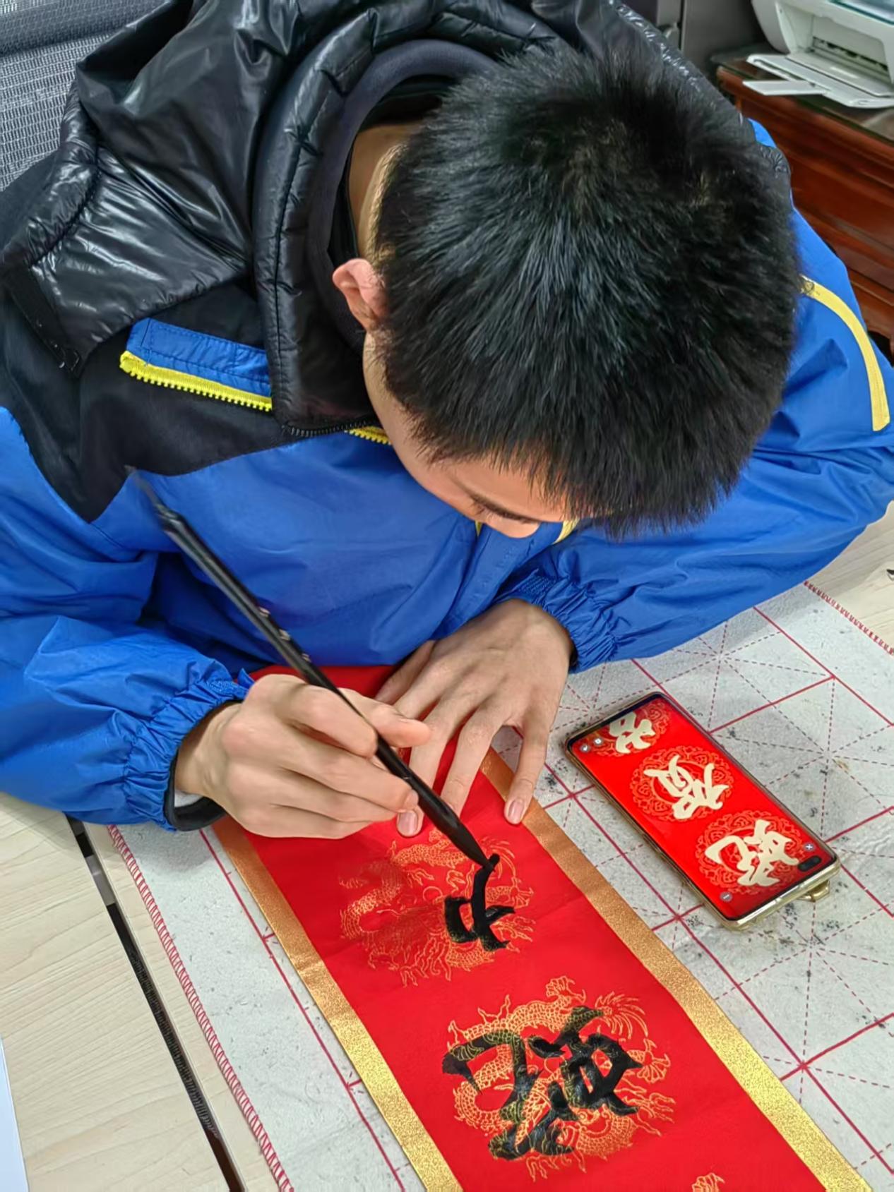 写春联,作为春节传承千年的重要习俗,承载着人们对美好生活的深切向往,传递着浓浓的年味儿。在这个新春佳节,同学们满怀热忱,纷纷化身“小小书法家”。小心翼翼地铺开喜庆的红纸,轻轻蘸饱浓墨,紧接着,笔锋游走、挥洒自如,动作一气呵成。“五福临门鸿运开,万事顺心如意来”、“金蛇迎春福气来,平安喜乐皆如意”,书写的每一副春联都承载着同学们对新年的美好祈愿,将它们张贴在自家门上,瞬间为节日增添了浓厚的喜庆氛围,让整个家都沉浸在这温暖而热烈的新春气息之中。