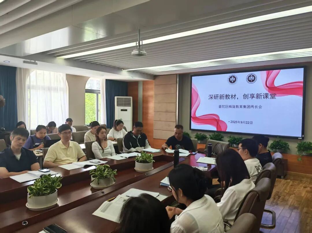 培养专业性人才队伍是良好教育生态构筑的不竭源泉。梅陇集团坚持“乐学·厚德·雅正·创享”,着力队伍建设,优化教育生态。2025年9月22日上午,上海市梅陇中学与上海市梅陇实验中学延续两校常态化的“线下主会场 + 线上联动”沟通模式,联合召开梅陇教育集团两长会议。本次“线下主会场”设在梅陇实验中学,梅陇中学分管教学副校长翁方波和教导室主任周晹芩在梅陇实验中学主会场,现场主持会议;会议围绕 “深研新教材,创享新课堂”核心主题,聚焦教研规划、骨干队伍建设与规范落实,为新学期梅陇集团教学质量提升锚定清晰方向。