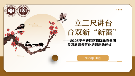 秋意渐浓,学履不停。为助力新教师扣好职业生涯的“第一粒扣子”,走好专业成长的第一步,近日,梅陇教育集团作为上海市见习教师规范化培训基地,举办了以“立三尺讲台,育双新新蕾”为主题的2025学年见习规培开班仪式。在温馨而庄重的氛围中,一段新的教育旅程缓缓启程。
