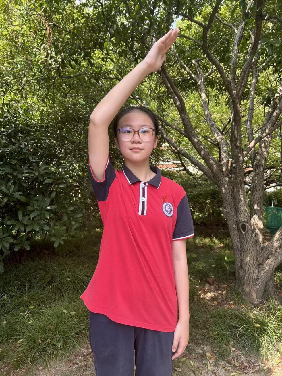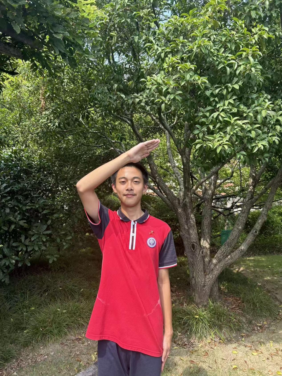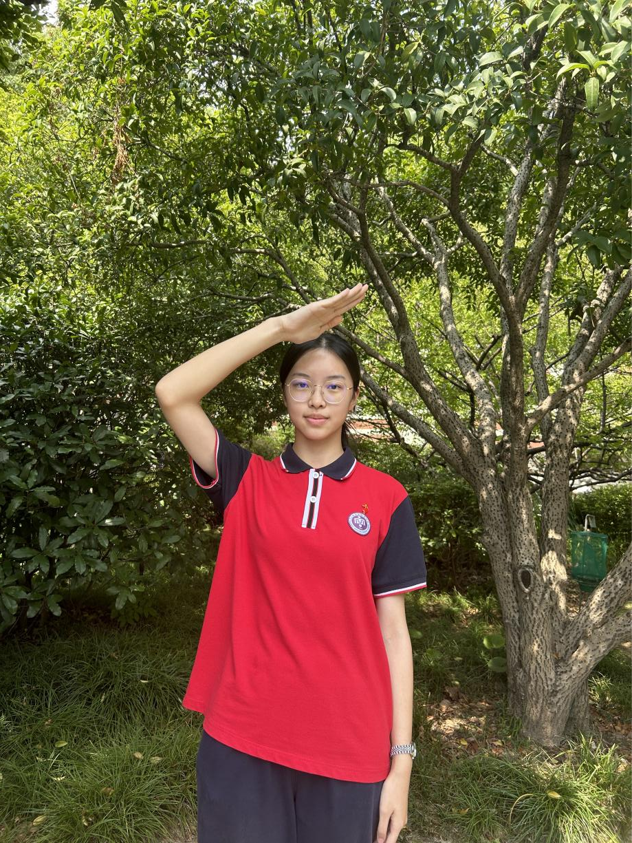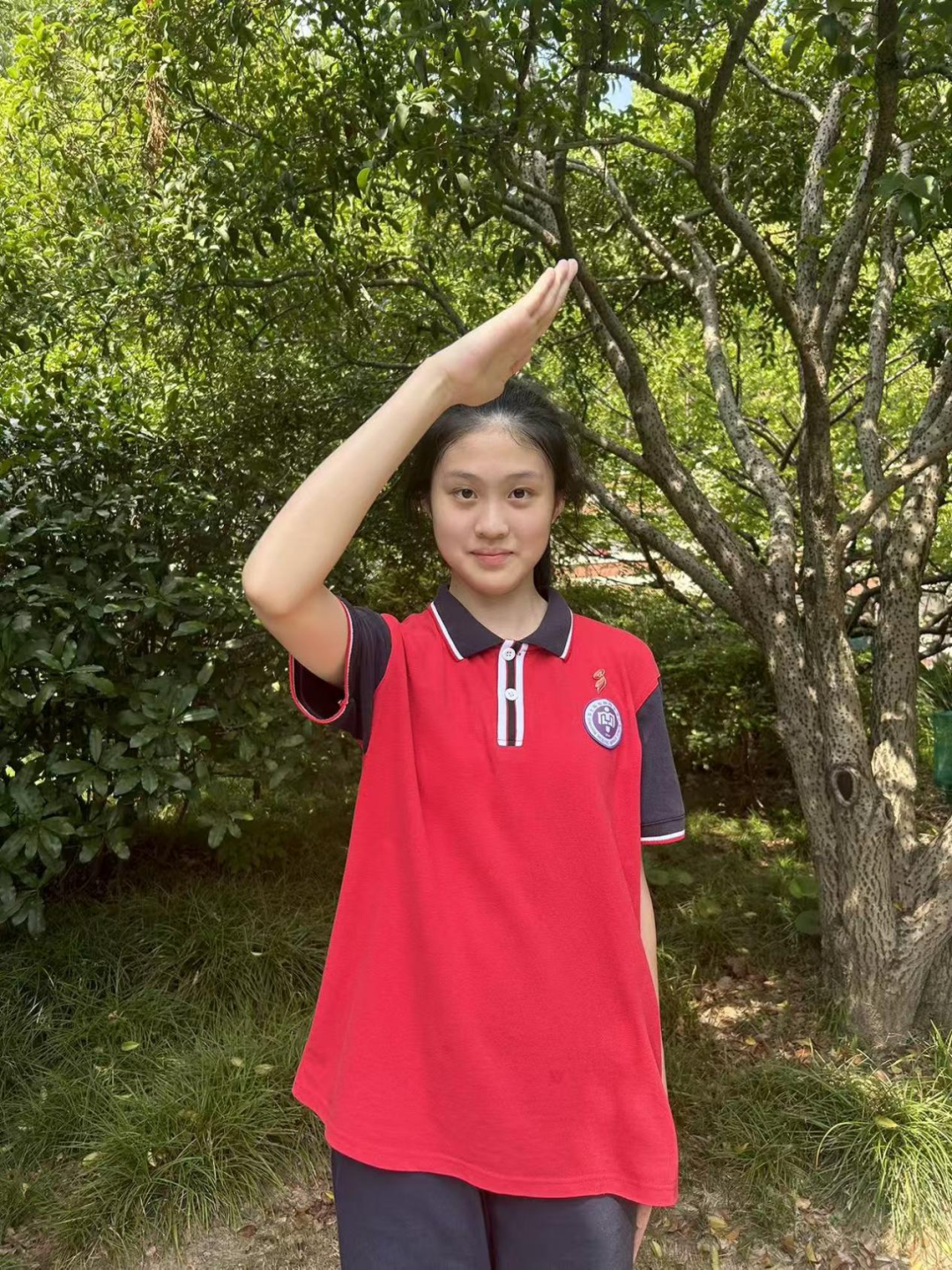 我是九5班的沈彧珏,回望护旗队的日子,训练是不变的底色。从最初握旗时的生疏颤抖,到后来动作行云流水的熟练;从第一次出旗时的心跳加速、紧张无措,到如今迈步时的从容坚定。这段旅程里,我收获的不只是标准的动作,更是被时间慢慢锻造出的沉稳心性,是在一次次肌肉酸痛、汗水浸湿衣衫后,依然能重新燃起的那腔永不言弃的韧劲。这面鲜红的旗帜,见证了我的蜕变,成为我青春里最厚重的印记。