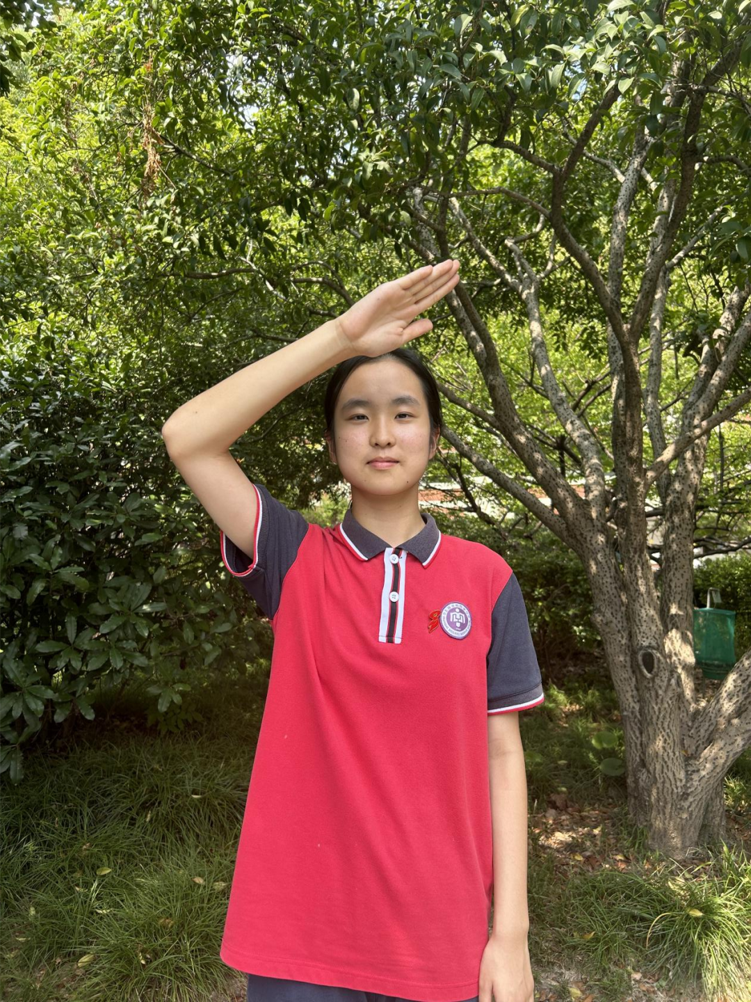 我是九12中队的于家媛,很荣幸能成为国旗队的一员,在国旗队的这段时光,于我而言意义非凡。每次紧握国旗一角时,我心中的责任感与使命感便愈发强烈。这不仅锻炼了我的毅力,意识到集体的力量,也使我对国旗所承载的家国情怀有了深刻的理解。未来,我会带着这份在国旗队收获的成长,在人生道路上继续奋进,让国旗的精神始终在心中熠熠生辉。