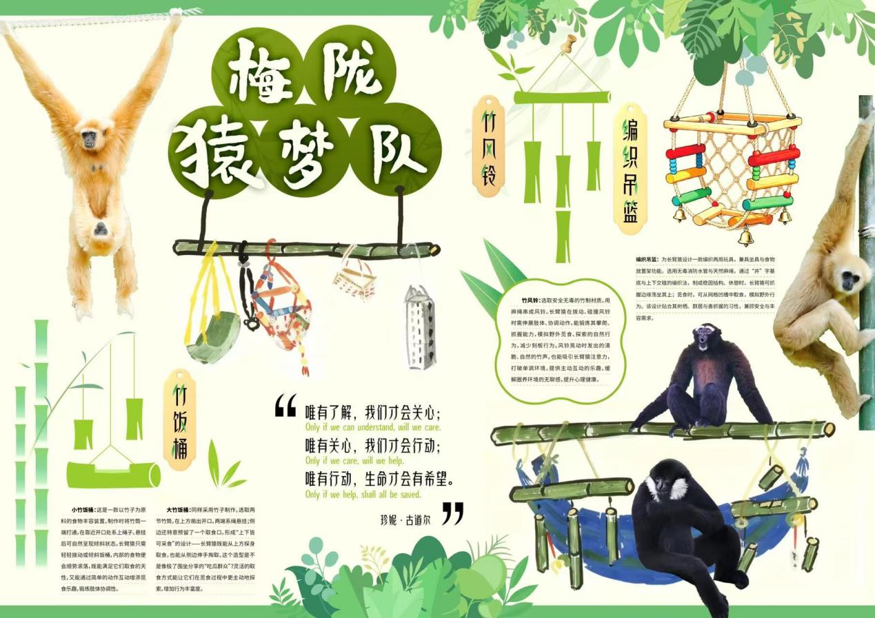 “摆呀摆,甩呀甩,树顶是我的大舞台。风缠绕在手腕荡漾,星星坠入我蓬松的胸怀。”10月19日,伴随着欢快且充满创意的“长臂猿之歌”,梅陇猿梦队在上海动物园启动了“我给长臂猿做玩具”的公益之旅。