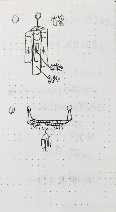 装置组在国庆假期期间,通过线上讨论,分组查阅资料,精心挑选了竹子、消防水管、麻绳等无毒、安全、环保的自然材料,建造了一个集攀爬架、竹饭桶、编织吊篮、竹风铃、布吊床和吊环于一体的“长臂猿乐园”,以充分满足长臂猿的天性需求。攀爬架和吊环有助于它们锻炼肢体力量;藏匿食物的竹饭桶和编织吊篮则激发其探索欲望,将进食过程转化为益智游戏;竹风铃的设计旨在引发好奇心;而布吊床则为它们提供了一个安心休憩的场所。同学们将天马行空的创意付诸实践,只为给长臂猿营造一个契合其天性的理想乐园。