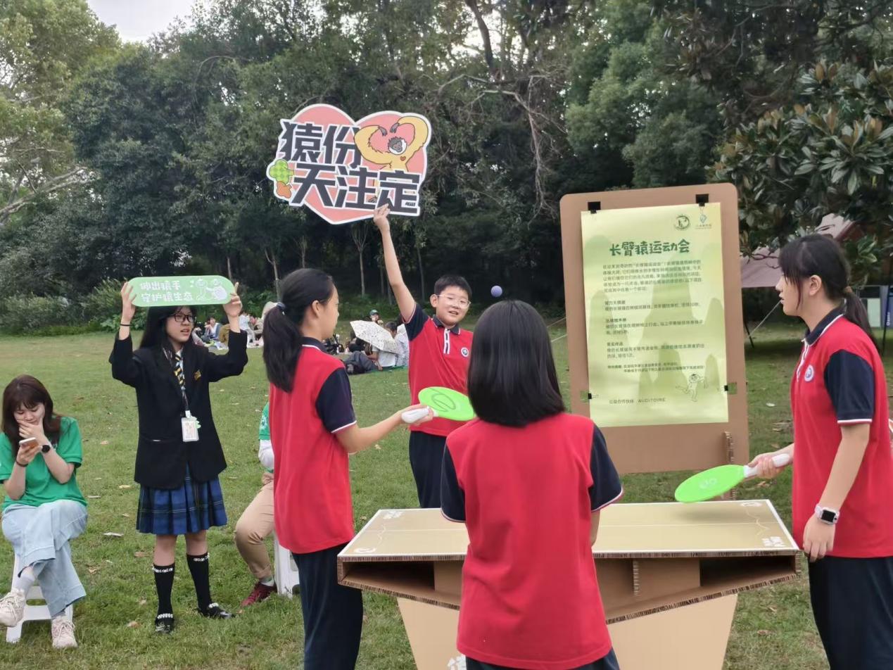 当林间长臂猿的清脆啼鸣穿越清晨的森林,当公益初心与青春热忱激情碰撞,一场专为“猿”量身定制的温暖行动,在上海市梅陇中学悄然拉开序幕。值此2025年10月24日国际长臂猿日来临之际,上海市动物园携手环保组织“上海根与芽”,共同开展了“我给长臂猿做玩具”的主题活动,为珍稀物种长臂猿的保护注入了全新活力。“梅陇猿梦队”应运而生,众多梅陇学子积极参与,亲手为长臂猿制作丰容玩具,并参与帐篷巡展,生态保护的种子在青春的土壤中悄然扎根、茁壮成长。