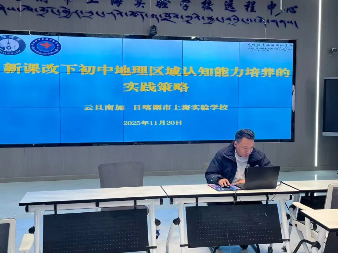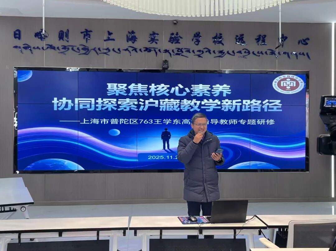 2025年11月20日,上海市梅陇中学架起了一道横贯东西的数字虹桥,东起上海普陀,西接西藏日喀则。上海市普陀区“763”人才攀升计划王学东高级指导教师团队携手西藏日喀则上海实验学校,在上海市梅陇中学开办了一场跨越4000公里的地理云端研修活动,共同探索核心素养落地的创新路径。华东师范大学张琦教授全程参与指导。