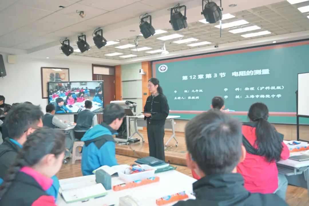活动伊始,我校青年物理教师张敏玥呈现了一节题为《电阻的测量》的实验教学观摩课。本节课以“伏安法”为核心,巧妙设计为完整的科学探究流程,充分彰显了“做中学”的理念。学生们在数字化实验设备的辅助下,自主完成从方案设计到数据分析的全过程,不仅扎实掌握了知识,更提升了科学思维与实践能力,生动体现了我校在融合现代信息技术、创新课堂教学模式方面的积极成果。