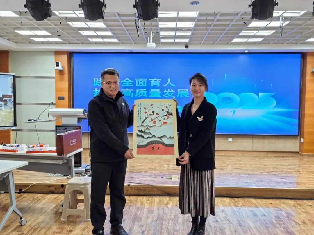 在情谊交融的环节中,双方互赠纪念品,传递诚挚祝福。潍坊市名校长领航工作室带来独具地方特色的潍坊风筝,寓意教育理想高远;我校回赠承载六十年校史印记的纪念品,传递梅陇人的教育坚守。礼物虽轻,承载的却是两地教育人共同的价值追求与合作期盼。