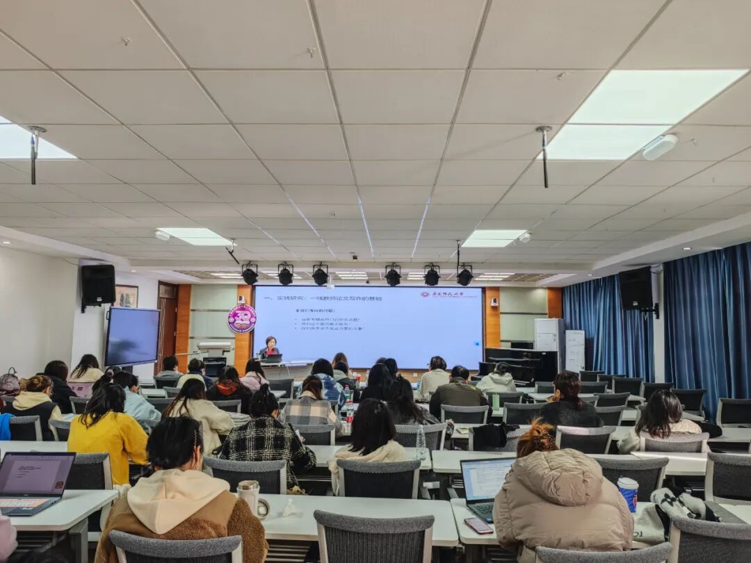 活动伊始,郭教授先拆解了教师常见的“只教不研”“为写而写”误区——“论文不是凭空的‘作文’,是教学问题的‘研究答卷’。”