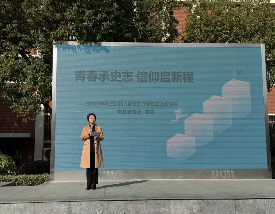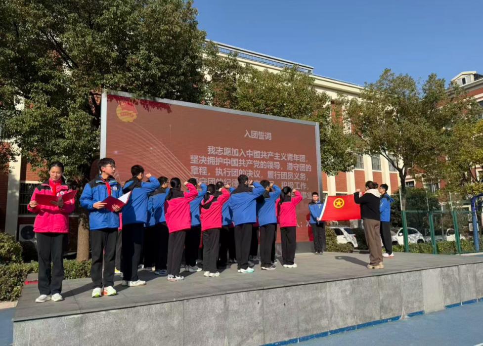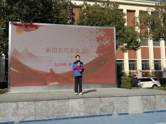 从系上红领巾的懵懂少年,到佩戴团徽的青年学子,改变的是胸前的标识,不变的是向上的初心。新团员代表九(10)中队韩宇恒同学分享成长感悟。他表示未来将以团员的标准严格要求自己,在求知路上勤耕不辍,在实践舞台勇毅前行,让团徽的光芒照亮每一段奋进的人生旅程。