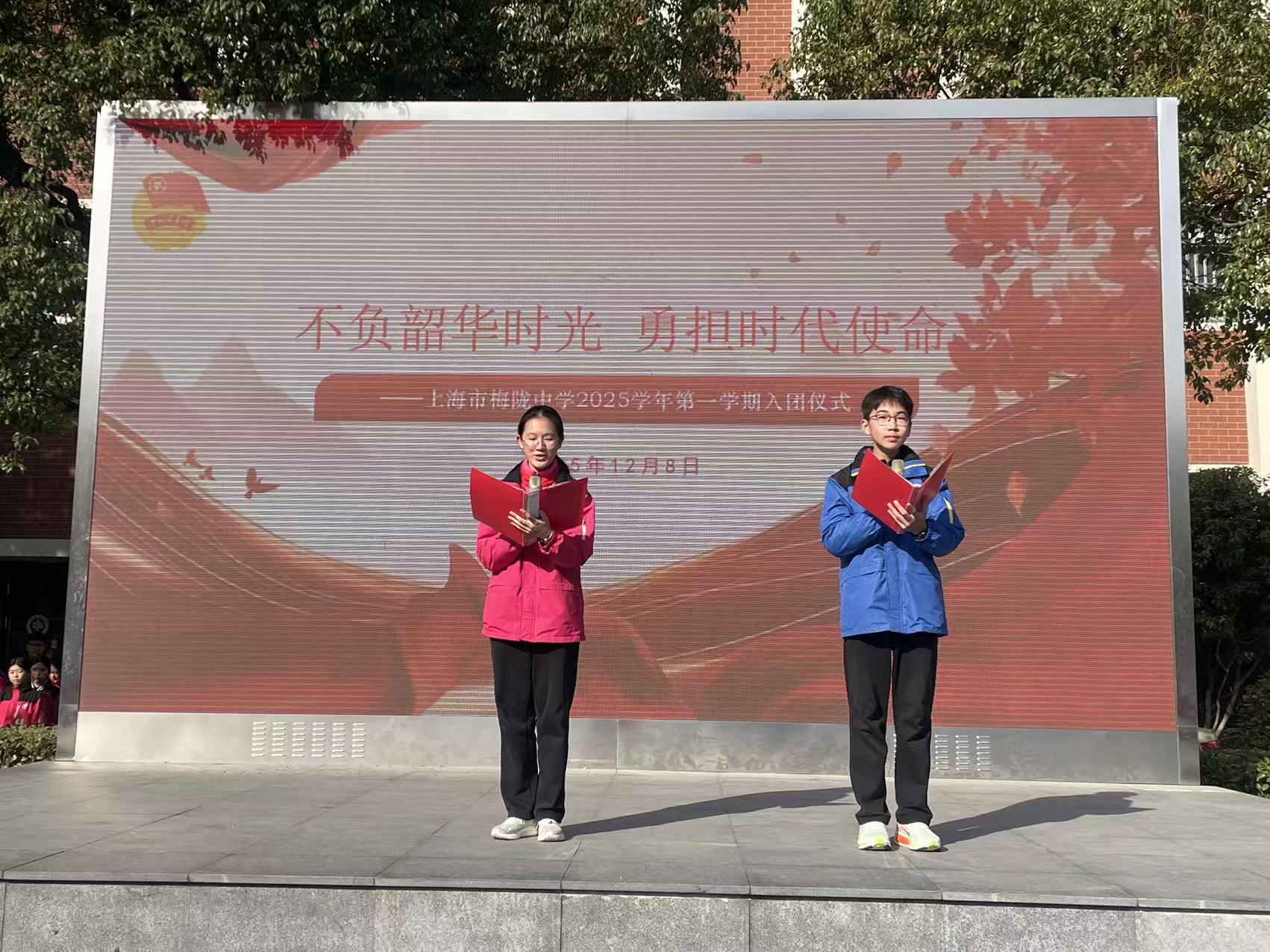 青春正好,使命在肩。2025年12月8日,上海市梅陇中学2025学年第一学期入团仪式在校园里隆重举行。24位同学带着热忱与向往,光荣加入中国共产主义青年团。团徽闪耀间,青春的责任与担当就此锚定。