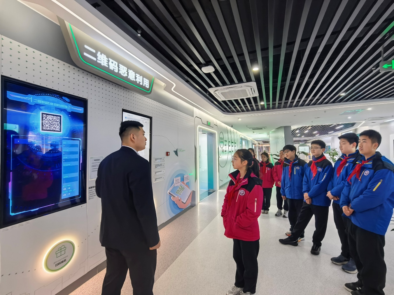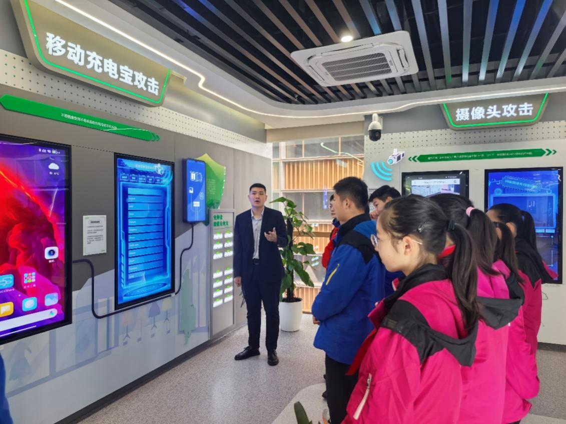 讲解员结合城市运行中的真实防护案例,为同学们讲解:网络安全不仅关乎个人的信息、财产安全,更与城市发展、社会稳定息息相关。从个人手机的密码保护,到城市交通、医疗系统的网络防护,网络安全防线无处不在。
